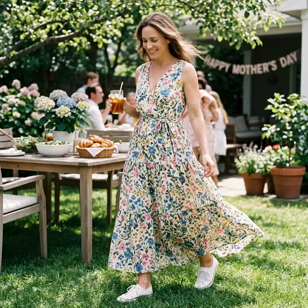 It balances “tough” and “pretty” in a way that works for almost any casual Mother’s Day activity.