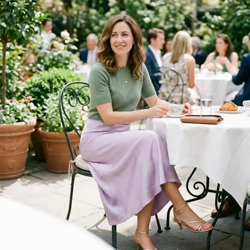 For the moms heading to a fancy brunch, a silk midi skirt is a total powerhouse piece.