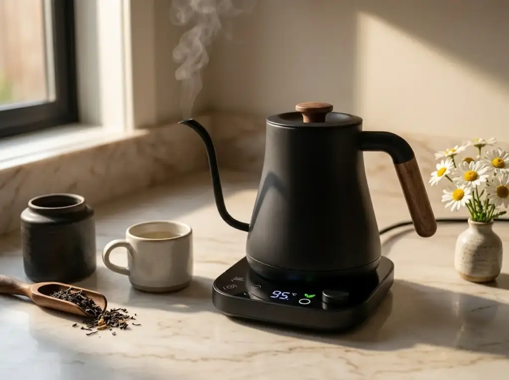 A gooseneck kettle with precision temperature settings makes her morning tea or pour-over coffee feel like a professional ritual. It looks pretty sharp on the counter, too.
