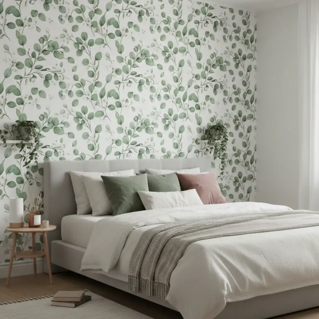- HAOKHOME Eucalyptus Peel-and-Stick Wallpaper for a fresh, calming base.