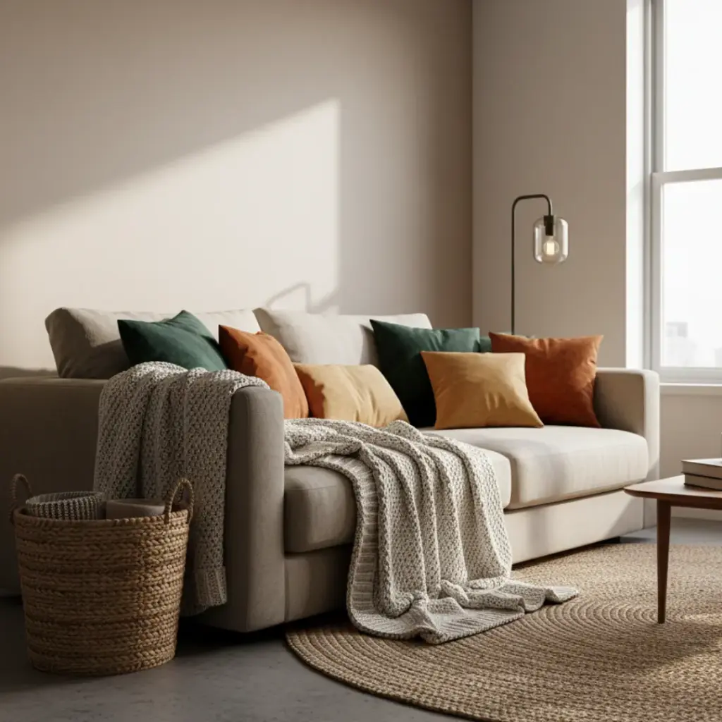 Mixing textures prevents your living room from looking like a sterile furniture showroom.