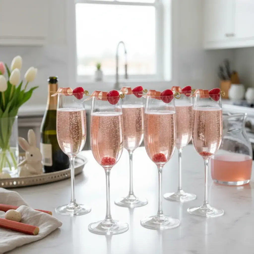 Rhubarb syrup adds a tart, pink flair that looks stunning in a flute. It’s festive, fizzy, and just a little bit fancy.