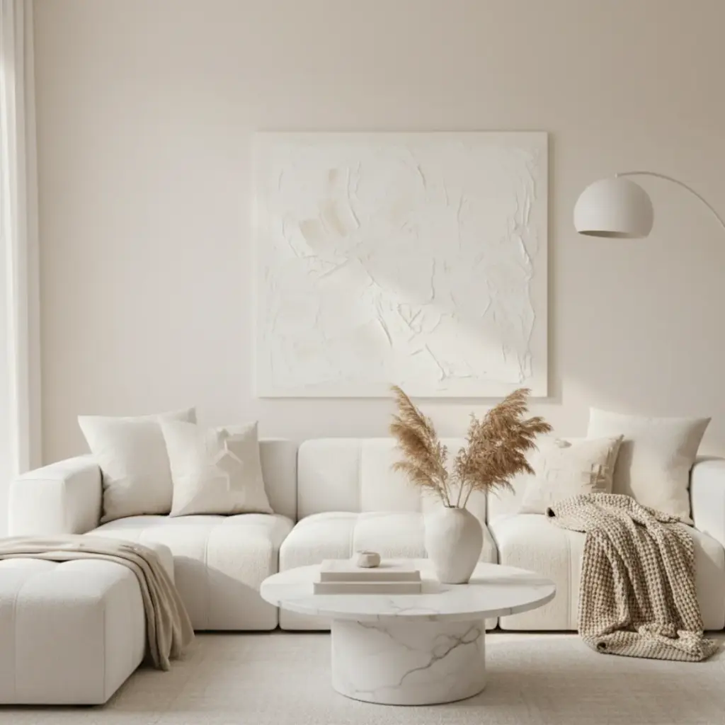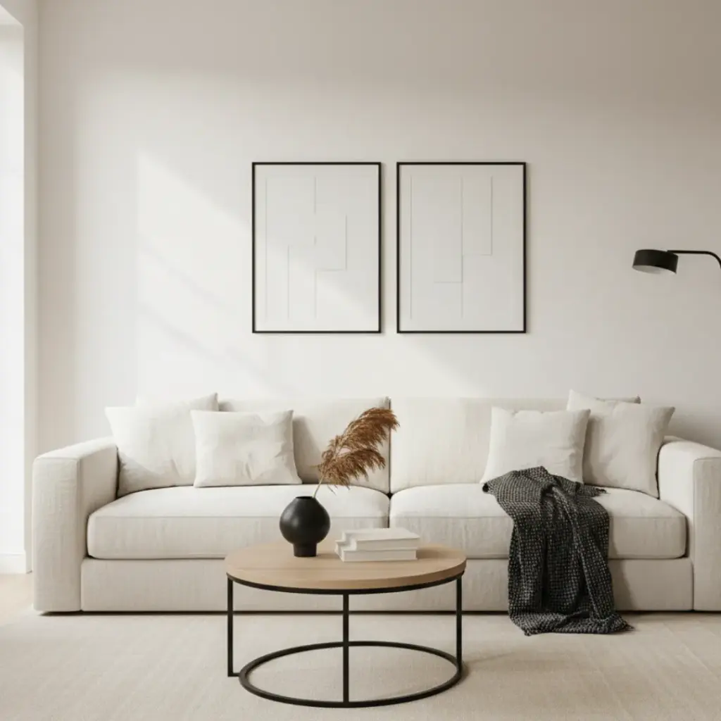 If everything is cream, nothing stands out. I use “pops” of black—like a thin picture frame or a metal lamp—to anchor the room.