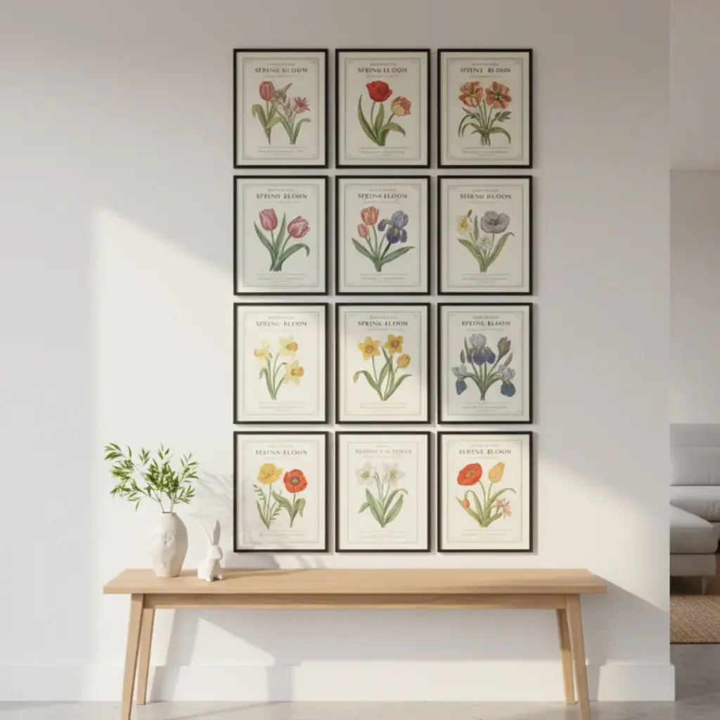 - Hang them in a 3×3 grid.
